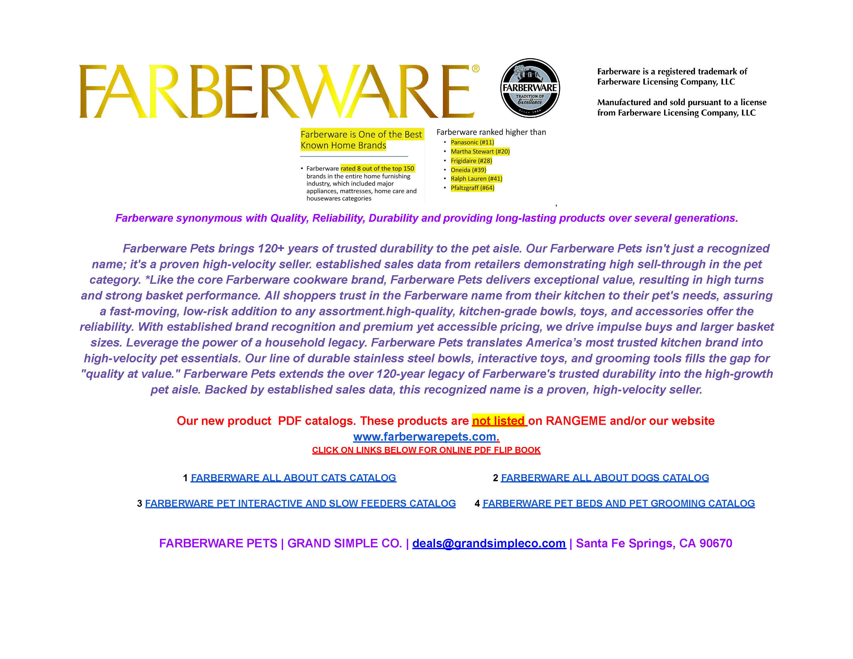 FARBERWARE PETS RANGEME DOCUMENT (DOCUMENT LINK with all active catalog URL links to PDF)